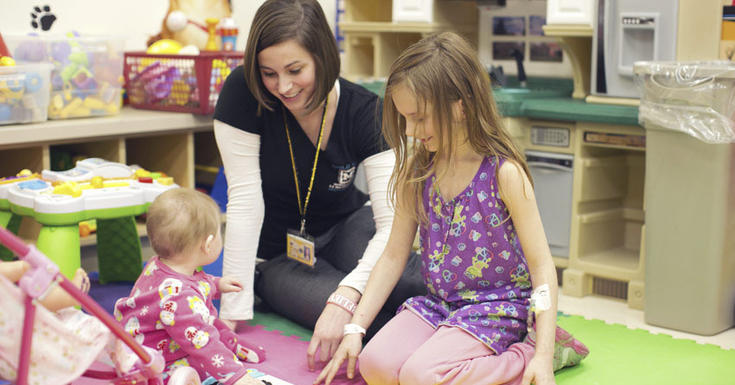 儿童生活助理或娱乐治疗师在床边和医院游戏室为病人提供娱乐和娱乐机会。